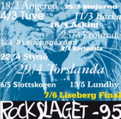 Thanklist: Rockslaget vill rikta ett stort tack till KSE Ljud & Ljus, Tuff Studio och Liseberg för ett fantastiskt gott samarbete. Tack till Peavey och BASF för utrustning. Och, framförallt, ett mega-tack till alla er omkring 1000 personer som varit engagerade under hela våren - som lirat, humpat, jurat, städat, med mera - det är ni som gör rockslaget möjligt.